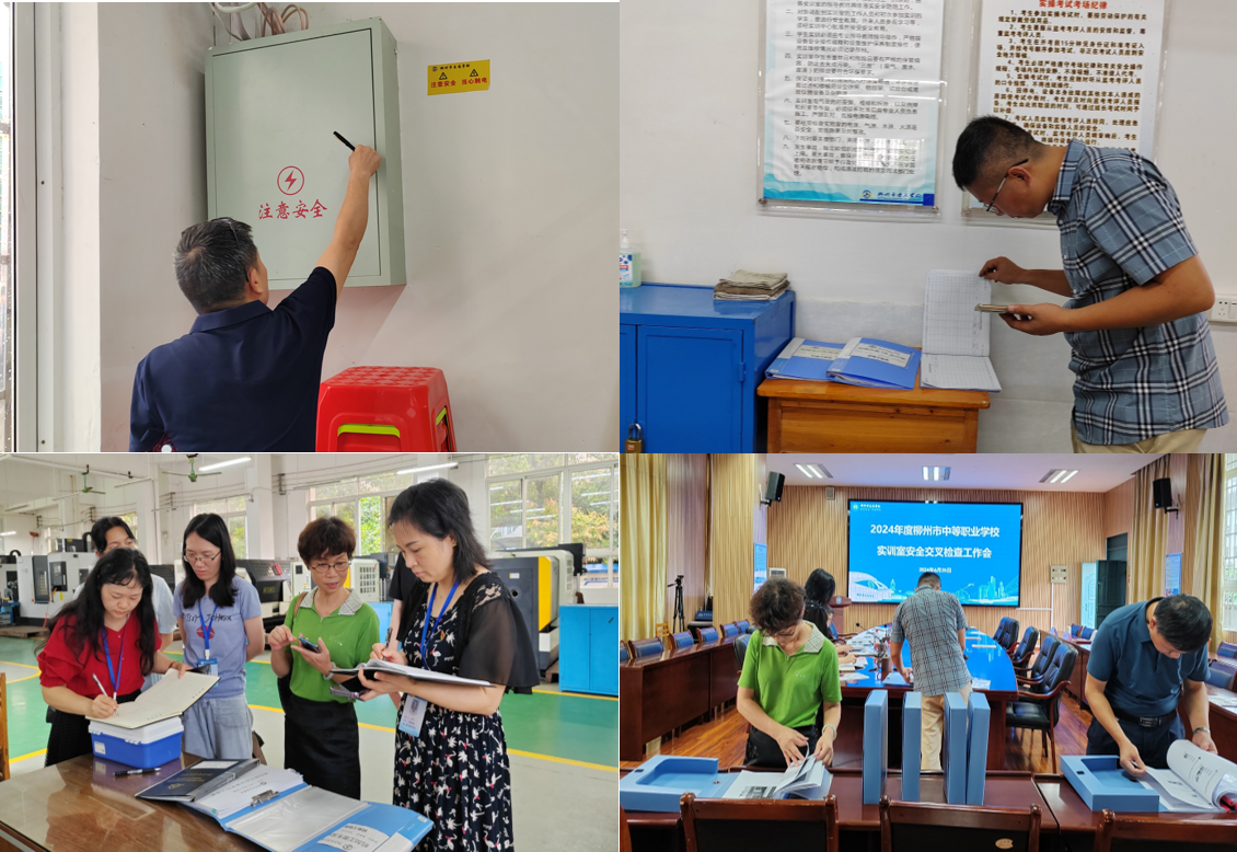 为规范中等职业学校实训室安全管理,保障广大师生的人身安全和校园稳定,6月25日,市教育局专家组一行5人莅临我校开展2024年度柳州市中等职业学校实训室安全实地检查工作。周轶群副校长,教务科研处、学生工作与安全保卫科、后勤服务科及系部相关负责人参加迎检工作。