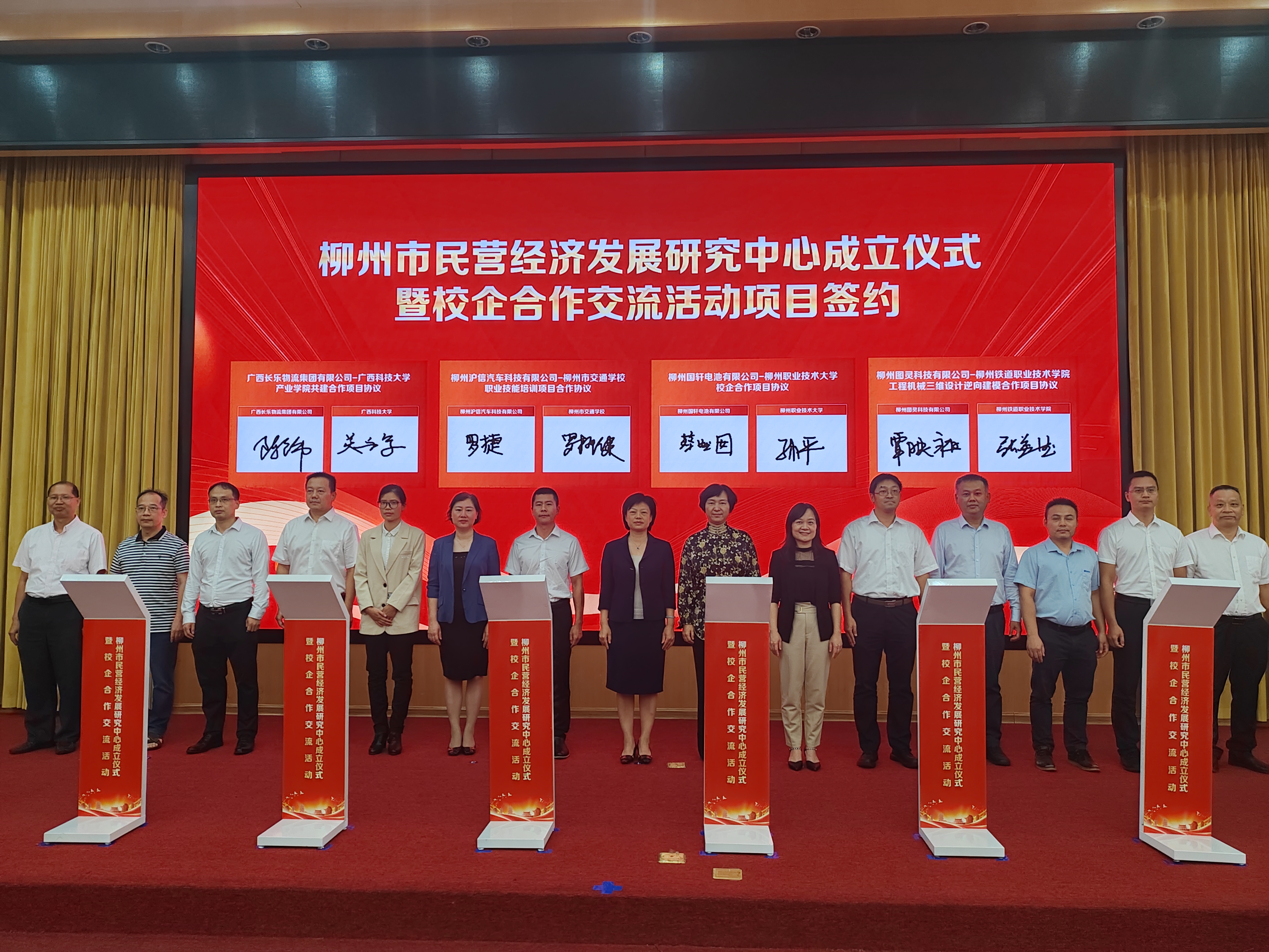 会上,市委统战部、市发展改革委、市工商联、广西科技大学共同签署《柳州市民营经济发展研究中心框架协议》并为“柳州市民营经济发展研究中心”揭牌。