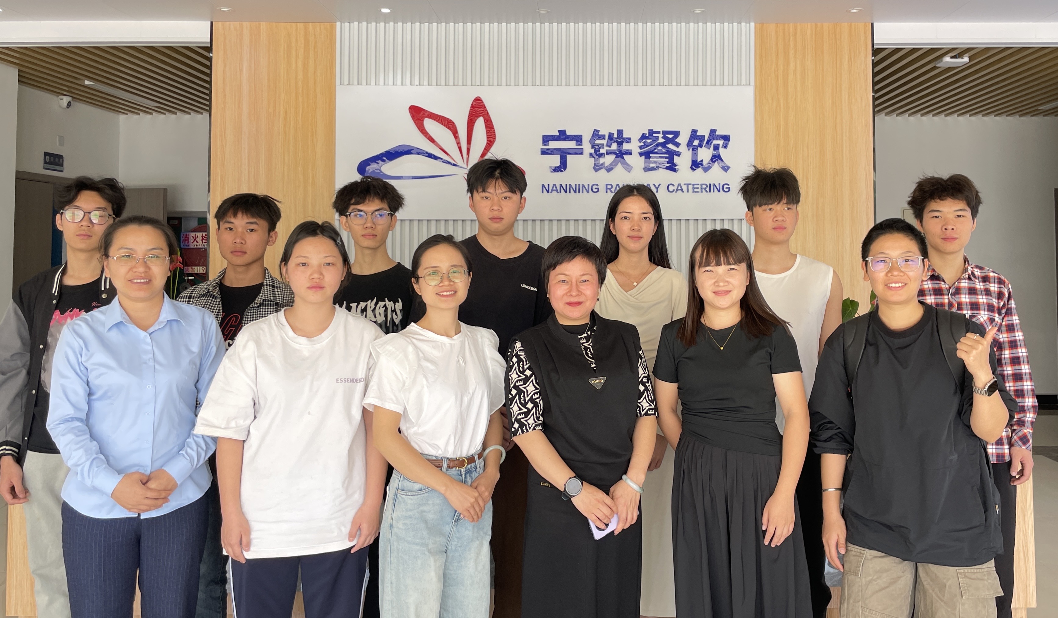 广西宁铁餐饮服务有限公司是一家国有控股的大型餐饮企业,今年6月,我校数名高铁乘务专业的学生对口输送到该公司进行岗位实习,担任乘服员一职。